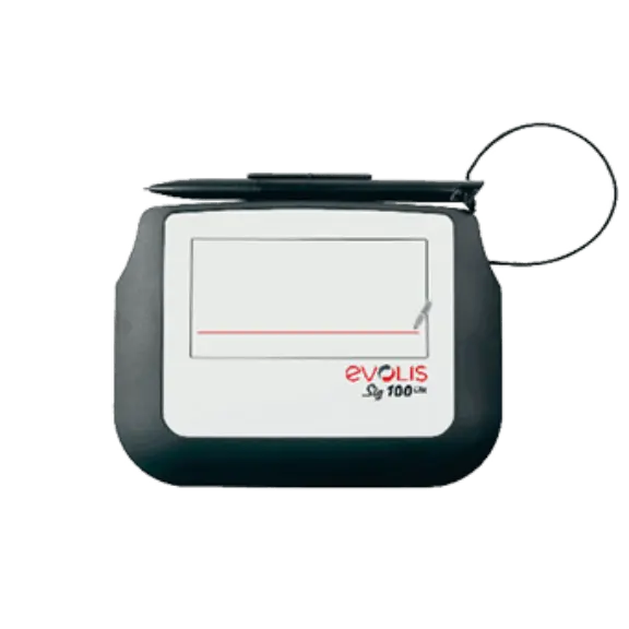El modelo es un pad de firma con pantalla LCD monocromática que funciona con tecnología resistiva.